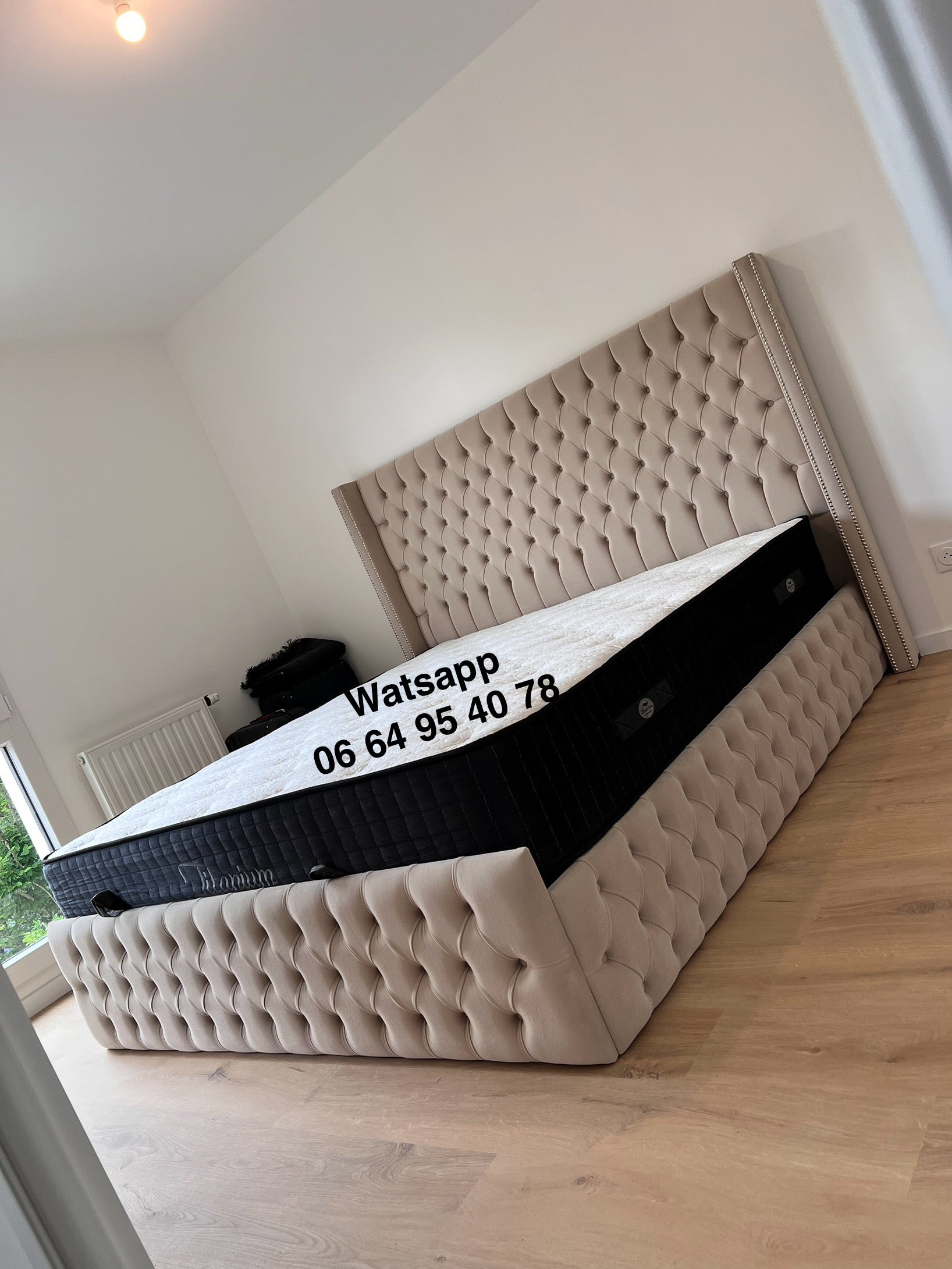 * Sommier du lit : Sommier métallique avec 9 pieds Hauteur 35cm très solide .